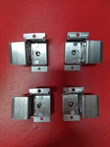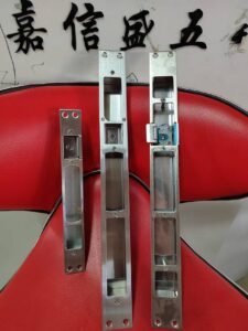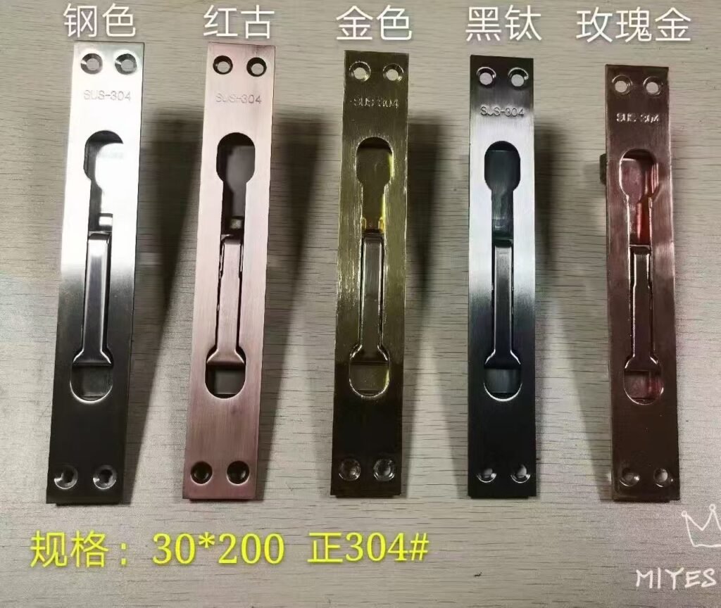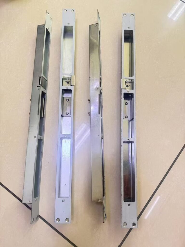 Stainless steel lock accessories set, including adjustable latch/keeper blocks and long strike plates/faceplates for multi-point mortise locks. Precision-cut, corrosion-resistant, and easy to install—designed to ensure smooth latch engagement and stronger door security for steel or wooden doors.